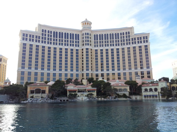 Отель Bellagio появляется во многих кинофильмах - например, Одиннадцать друзей Оушена. Он знаменит своим шоу фонтанов. Пока - Белладжио при свете дня.
