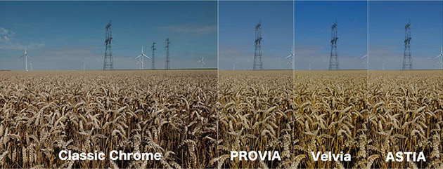 o Девять режимов имитации пленки: PROVIA, Velvia, ASTIA, CLASSIC CHROME, MONOCHROME, фильтры Ye, R и G, Sepia