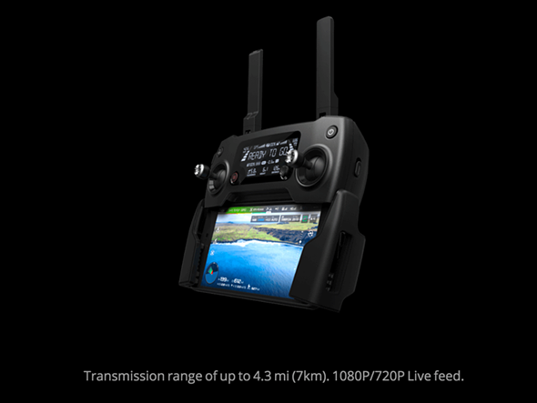 Дроном можно управлять при помощи дистанционного контроллера, оборудованного дисплеем, или с экрана смартфона. Кроме того, DJI также анонсировала разработку еще одного продукта для своего дрона – очки DJI Goggles, которые будут работать как очки виртуальной реальности с 85-градусным видео в формате 1080p прямо с камеры дрона.