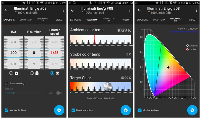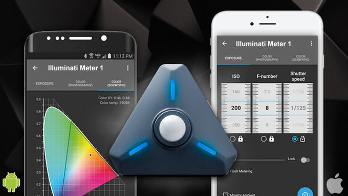 Illuminati - первый в мире экспонометр, работающий по беспроводному соединению Bluetooth со смартфонами. Устройство работает от батареек и подсоединяется к устройствам iOS, Android или умным часам через Bluetooth, благодаря чему возможно следить за показателями, не отходя от камеры.