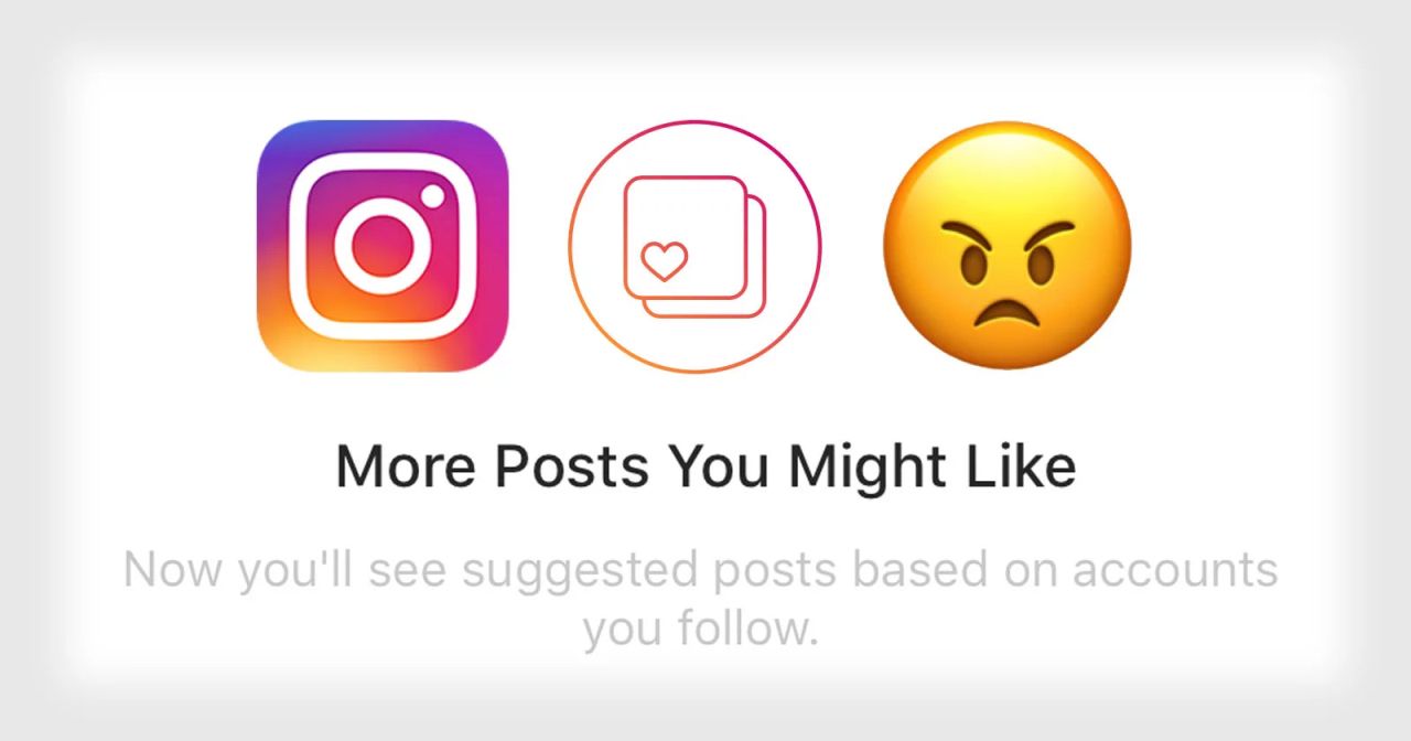 По сообщению ресурса TechCrunch, новая функция добавляет “Больше сообщений, которые могут Вам понравиться” в нижней части Вашей ленты новостей после просмотра всех остальных постов. Нажав на кнопку “…” рекомендованного поста, можно временно скрыть “рекомендации” (ключевое слово - “временно”). Несмотря на то, что новая функция не предполагает замену постов людей, на которых Вы подписаны, на посты рекомендуемые Instagram, реакция людей на новую функцию в целом негативна.