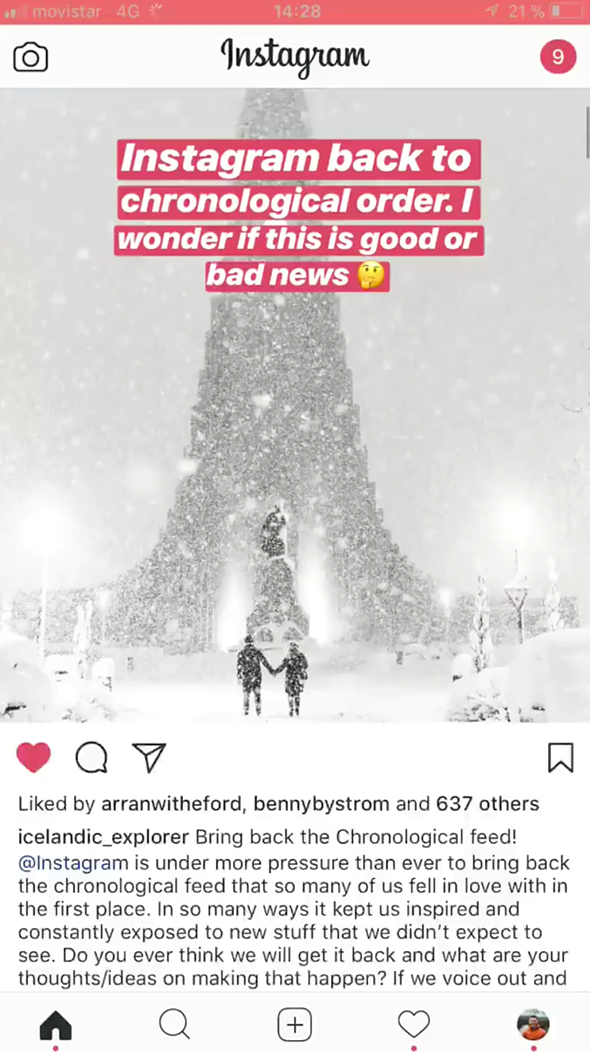 “Instagram возвращается к хронологическому порядку. Не знаю, хорошая это новость или нет".