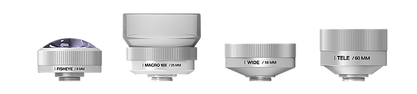 В данный момент доступно четыре объектива от Lemuro: 60мм эквивалентный телефото “портретный” объектив, 25мм 10X макро объектив, 18мм эквивалентный широкоугольный объектив (110-градусный угол обзора) и 8мм эквивалентный фишай с 238-градусным углом обзора.