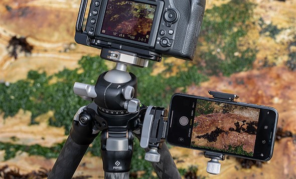 Одним из наиболее заметных изменений стало добавление нескольких 1/4"-20 гнезд вокруг основания штатива. Эти дополнительные гнезда позволяют прикреплять различные аксессуары, такие как крепление Really Right Stuff для телефона или опциональный ремешок для переноски.