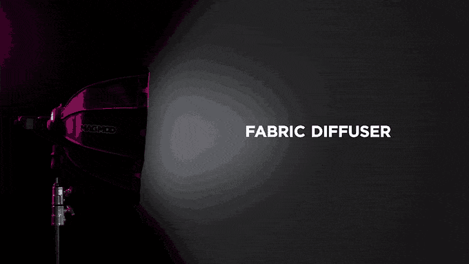 В дополнение к стандартному тканевому диффузору, MagBox предлагает уникальный диффузор - FocusDiffuser. Он работает как комбинация диффузора и сетки, при этом его микроструктура перенаправляет свет вперед, увеличивая количество света за счет уменьшения светопотерь (аналогично работе линзы Френеля).