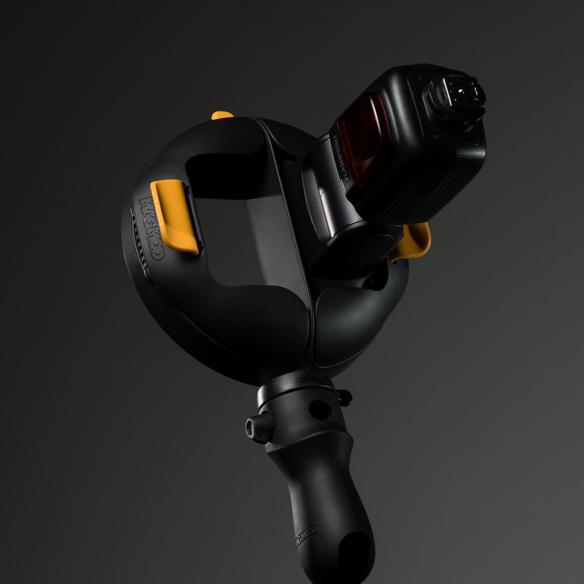 MagShoe сочетается с MagRing, и имеет встроенный держатель для дополнительных аксессуаров. Для настройки угла MagShoe, фотографу понадобится нажать на большую желтую кнопку.