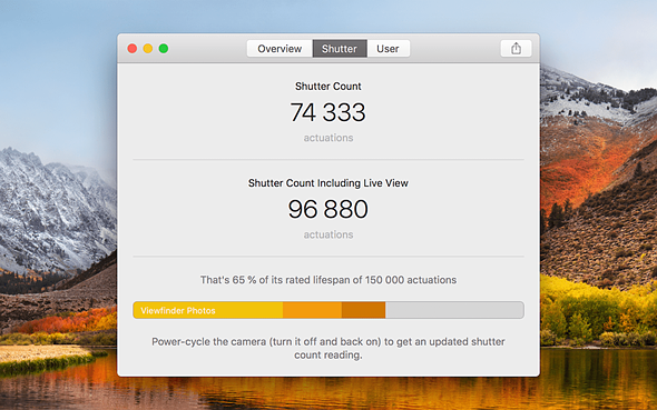 Для того, чтобы помочь оценить, сколько еще сможет проработать затвор, EOS Inspector 2 показывает ожидаемую продолжительность жизни затвора камеры. Также приложение позволяет изменять метаданные изображений, включая имя владельца, автора и данные о правах на изображение.