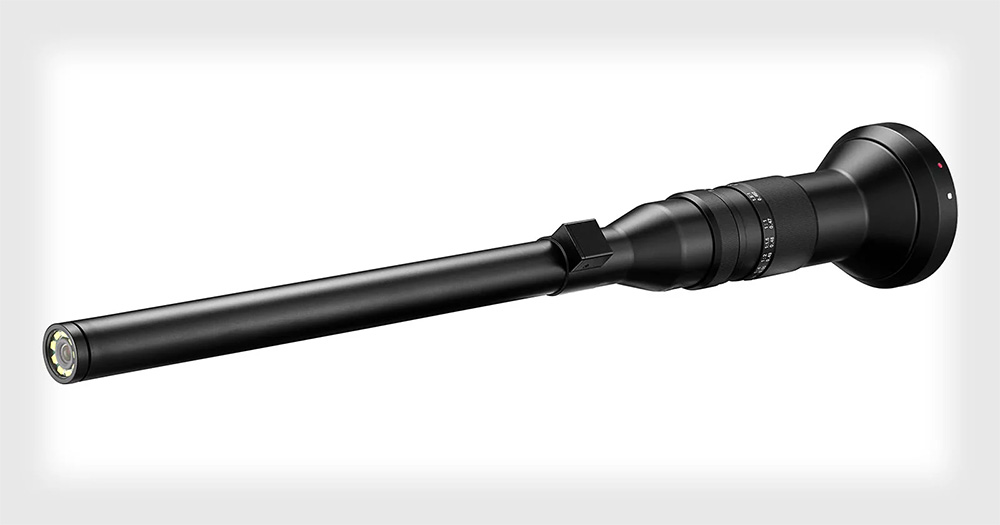 Laowa 24mm f/14 2x Macro Probe имеет ультра-узкий корпус в виде продолговатой трубки, весит всего 474 грамма, а его длина составляет 40 сантиметров.