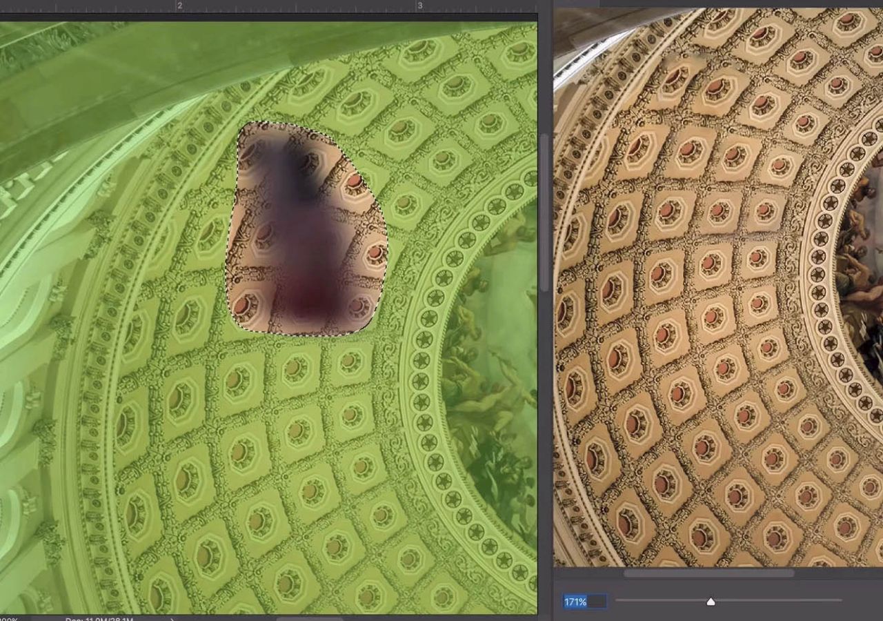В новом рабочем пространстве пользователь сможет снимать выделение с частей фотографии, которые нужно исключить из результатов заливки: