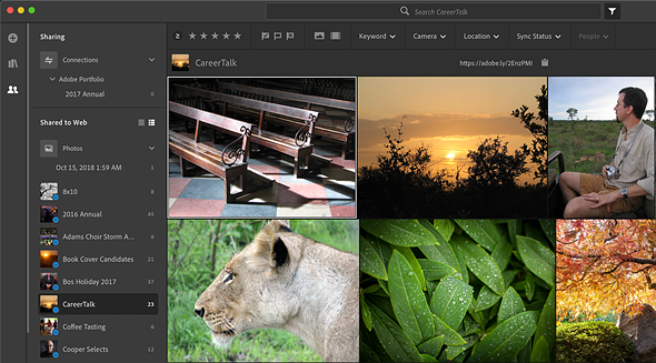 В новый Lightroom CC добавлена вкладка Share, в которой отображаются все альбомы, которыми пользователь поделился. В версиях для Mac и Windows также появилась новая функция Connections, которая позволяет делиться альбомами в сторонних сервисах. Пока к ней привязан только Adobe Portfolio, но в будущем компания надеется добавить дополнительные сервисы.