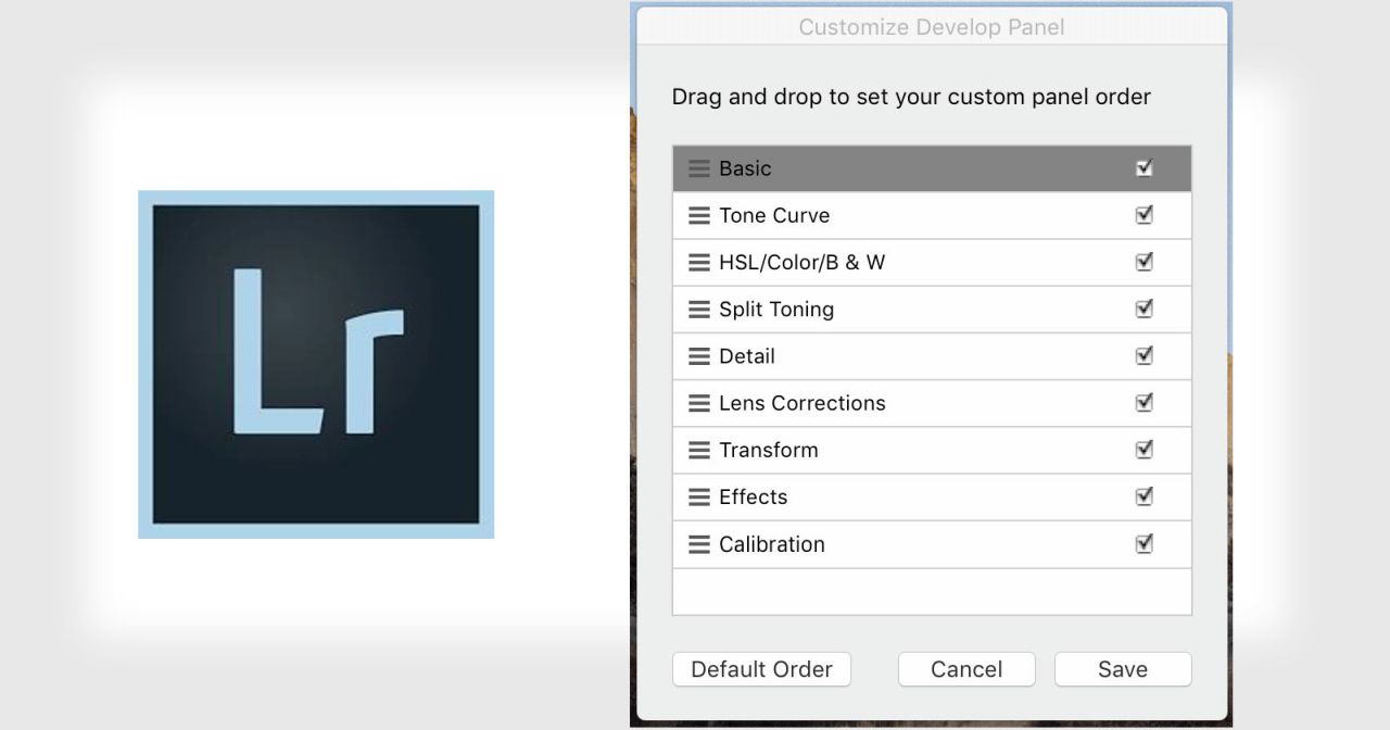 Теперь можно настраивать порядок и скрывать инструменты в модуле Develop, с помощью правого клика (or Ctrl+click на Mac) на любом заголовке панели и выбора «Customize Develop Panel».