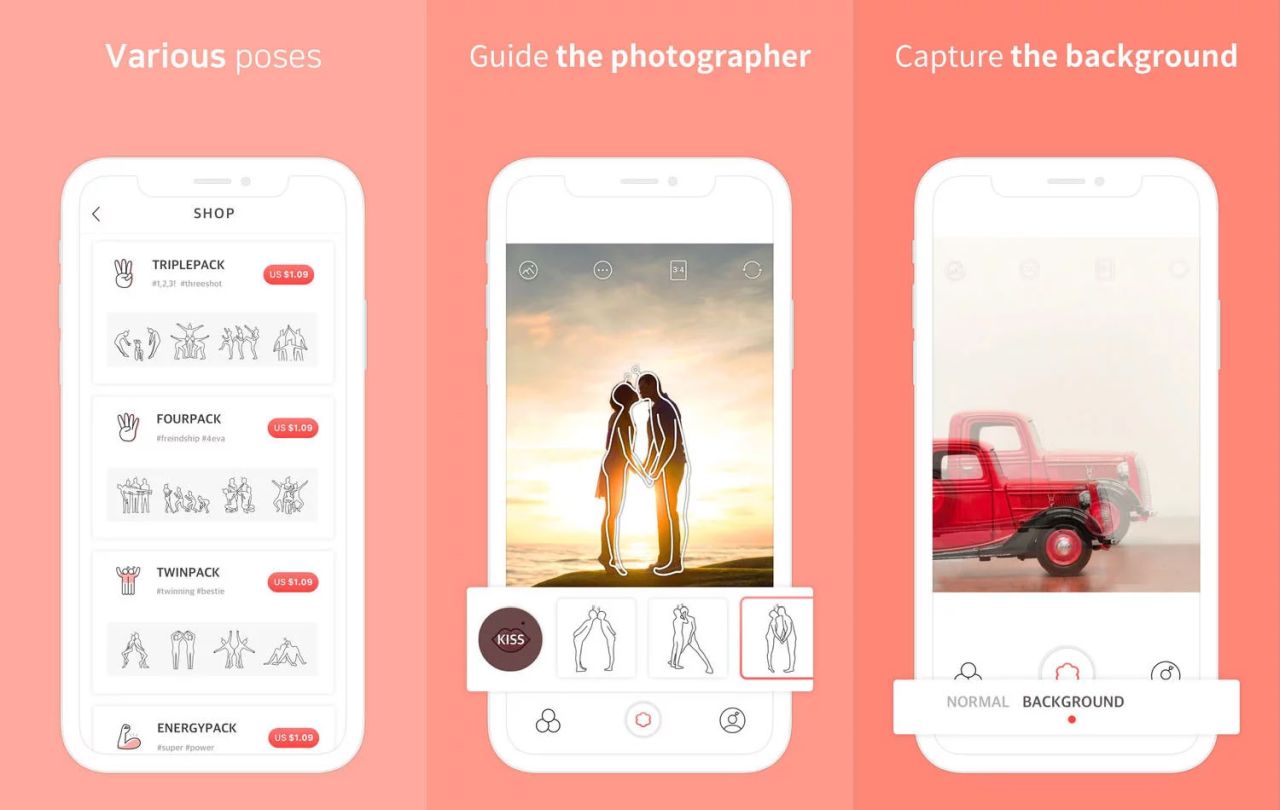 Слоган приложения: «Не объясняй, просто покажи!». Для того, чтобы показать фотографу, какой кадр вы хотите, нужно просто выбрать позу и позицию, которая появляется на экране в виде контуров. Незнакомец, которому вы передаете свой смартфон, сможет просто совместить контуры и ваше изображение на экране, чтобы получить точное расположение в кадре.