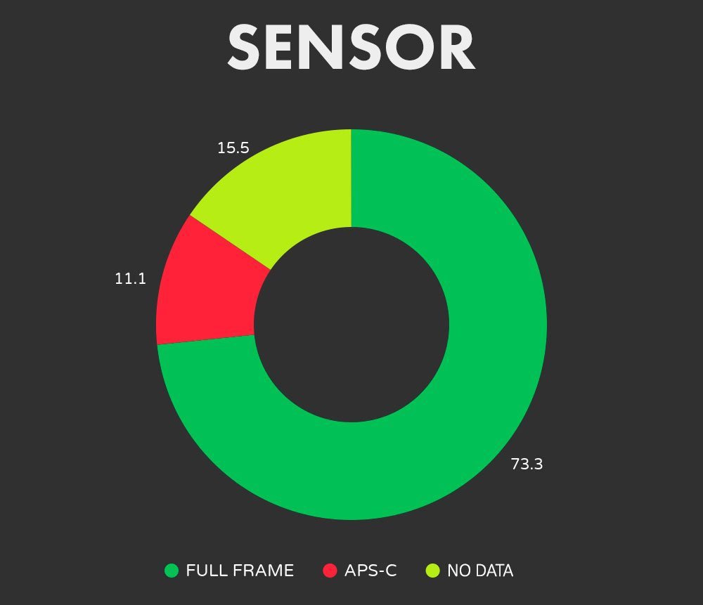 Полный кадр ожидаемо вновь оказался вне конкуренции (73,3% против 11,1% у APS-C):