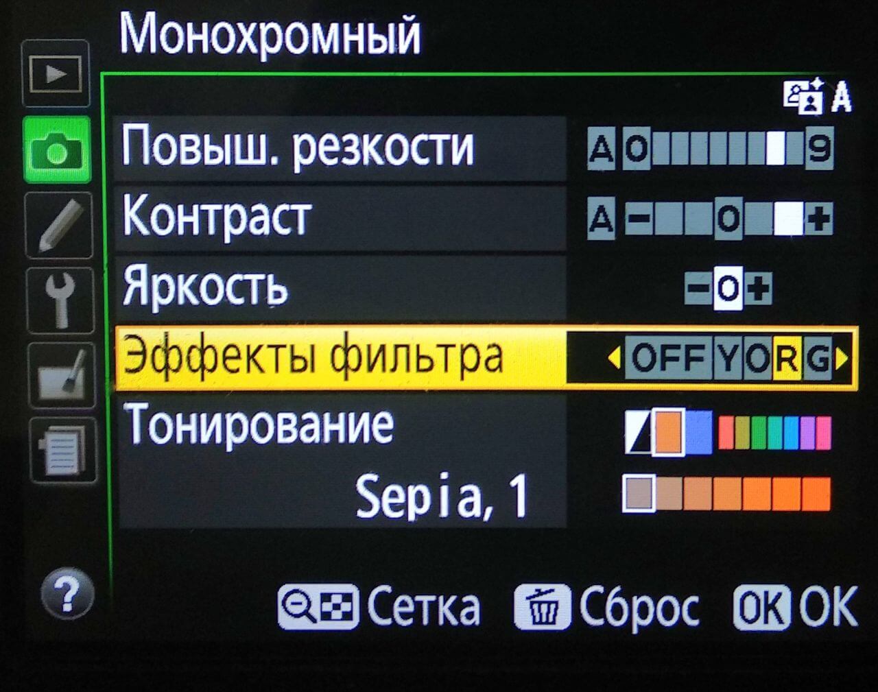 Преобразование черно-белой фотографии при использовании цветных светофильтров
