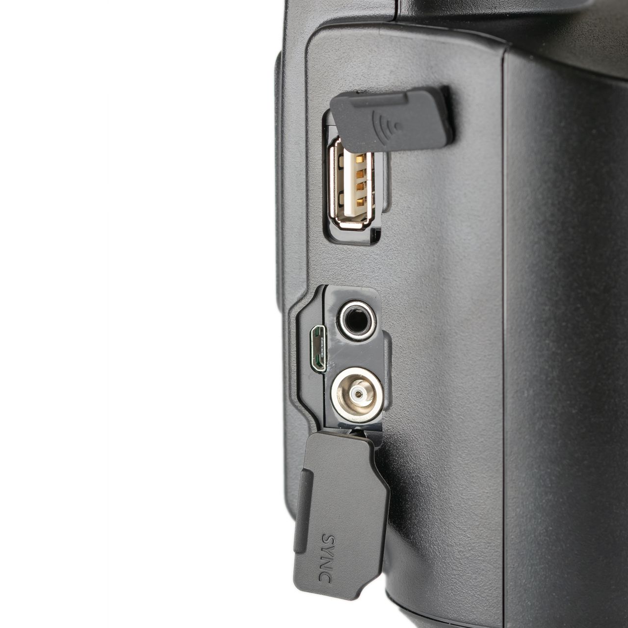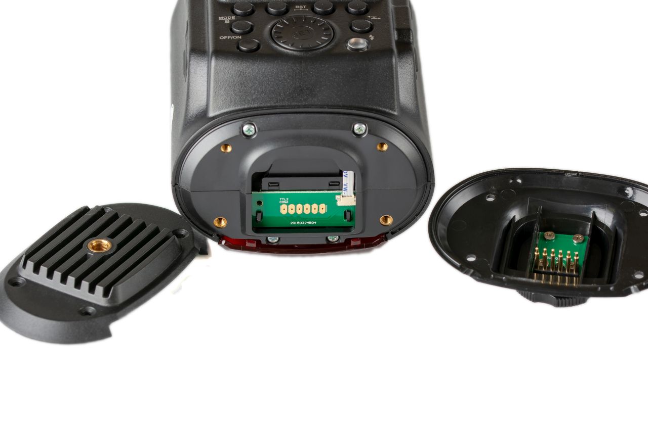 Godox Witstro AD360II богато оснащена интерфейсами синхронизации. Помимо очевидного интерфейса сопряжения с камерой через горячий башмак на вспышке также есть разъем PC-синхронизации, 3.5мм jack и гнездо подключения собственных синхронизаторов Wireless Control Port. И это еще не считая светоловушки и встроенного радиосинхронизатора. Все эти разъемы расположены рядом, плюс там же расположен разъем microUSB для обновления прошивки устройства. Такое разнообразие возможных способов включения вспышки в работу не может не радовать - каждый может подключить AD360II так, как ему будет удобно.