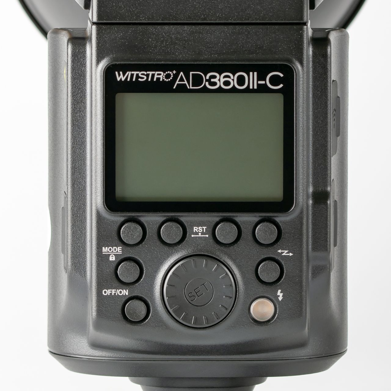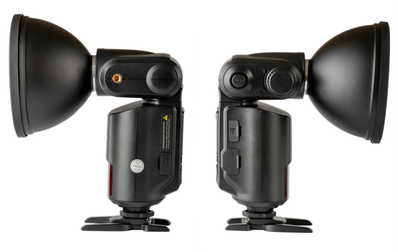 AD360II, как и любая другая вспышка, состоит из трех основных частей - источник питания, блок управления и поворотный ламповый блок. Поворот лампового модуля блокируется специальным фиксатором, в его основании есть кнопка позволющая разблокировать его.
