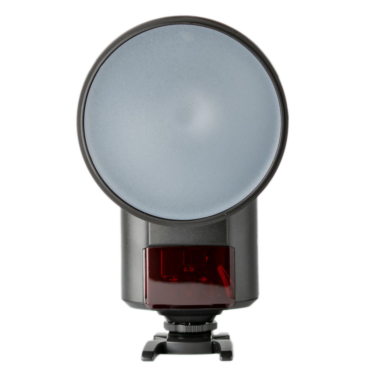 Блок управления - самый функционально насыщенный элемент вспышки. На передней панели, под светопрозрачным кожухом, расположены элементы приемника светоловушки, лампа подсветки автофокуса и светодиоды индикации работы в беспроводном режиме. Горячий башмак металлический, с винтовым фиксатором крепления на вспышку.