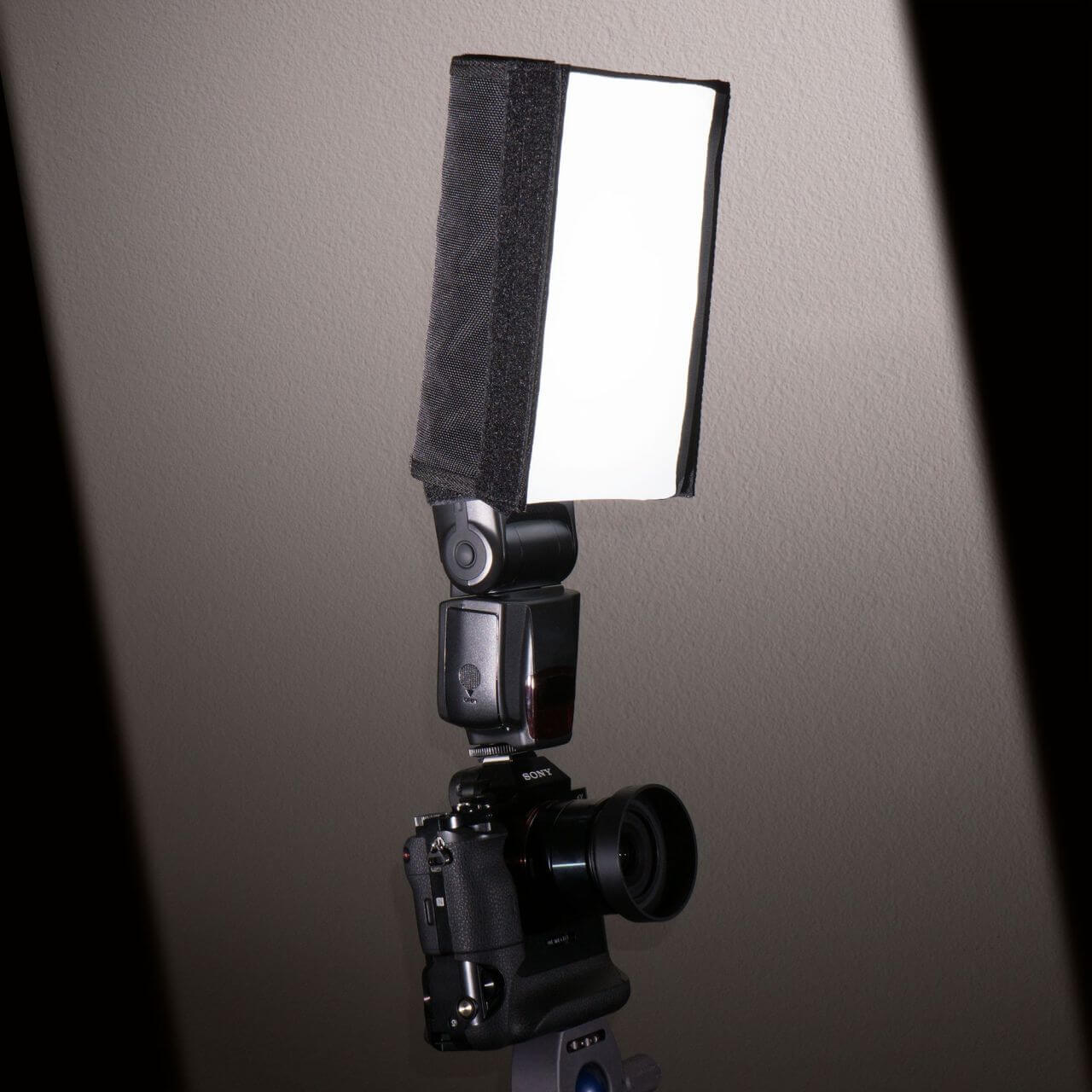 Отражайте свет от белой стены или потолка, чтобы получить больший по площади/мягкий свет.