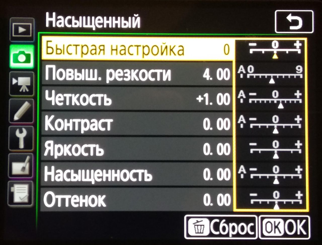 Цвета, при съемке напрямую в Jpeg, нормальные и без дисбаланса в какой либо тон. Плюс, как и в любой другой камере этой фирмы, есть набор предустановленных цветовых профилей - PictureControl. Дополнительно каждый из них можно дополнительно тонко подстроить или вовсе полностью создать свой цветовой профиль в приложении Nikon Capture NX, где даже можно тонко подстроить кривые в цветовых каналах.